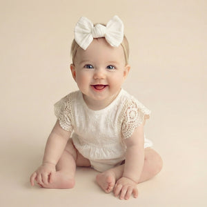 If you're a fan of our gorgeous Boho Bow Headbands, then you're sure to love these! Our Newborn Boho Bow Headbands feature a smaller-sized cute textured fabric bow with stretchy beige jersey band for comfort. Available in six amazing shades.