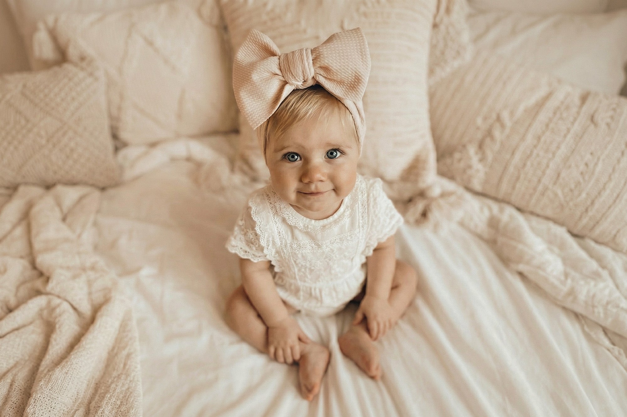 Featuring beautiful waffle fabric tied into an oversized bow at front. Perfect for a statement piece in your newborn sessions or as a lovely sitter accessory!