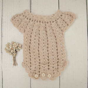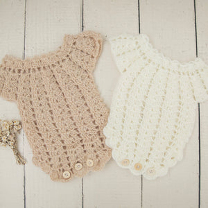 Our stunning Amelia Crocheted Rompers are the perfect addition to your newborn studios! Beautifully hand-crocheted in a gorgeous faux-cashmere blended yarn, they're sure to become one of your most popular newborn props. Three buttons at bottom for ease of use. Available in two amazing shades.
