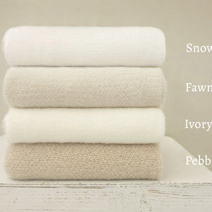 Our Ultimate Cashmere Wraps are a perfect addition to your newborn photography prop collection! These luxurious and fluffy baby wraps are definitely your go-to studio props. Composed of a lovely faux-cashmere yarn, they are luxuriously soft and stretchy & are available in four amazing shades!