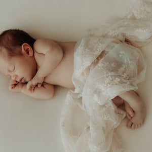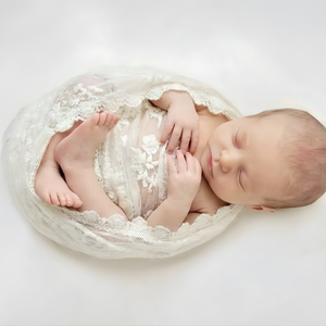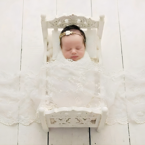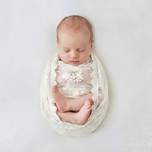 A stunning wrap to add to your newborn studio collection, our Antique Lace Wrap features delicate antique-style embroidered floral lace with finished intricate scalloped edge. Use as a stunning wrap, layer or drape to create a gorgeous look! Popular with newborn photographers worldwide and also a lovely idea for a baby shower gift.